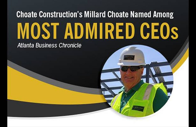 Choate Construction Company founder and current Chairman & CEO William “Millard” Choate was named one of Atlanta Business Chronicle’s 2018 Most Admired CEOs, topping the Engineers, Architects, and Contractors category....