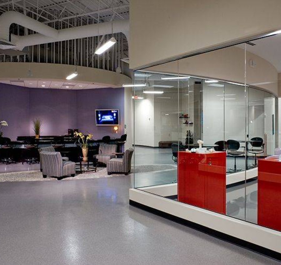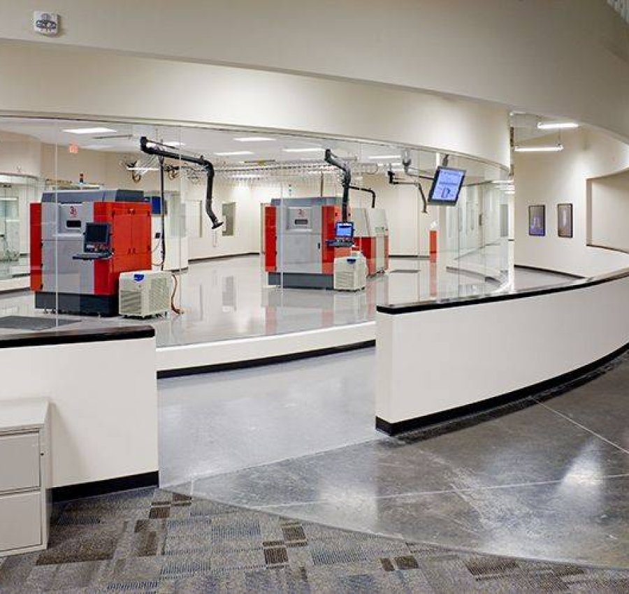3D Systems, a producer of three-dimensional printing and prototyping systems, relocated its headquarters to Rock Hill, South Carolina. The building combines corporate functions, principal R&D activities, and all key support functions into an open, modern, state-of-the-art facility that is conducive to creativity, innovation, engagement, flexibility, and teamwork. Included are an advanced customer service facility and a hot line call center, high-tech research and development labs, and a Rapid Manufacturing Center (RMC) to demonstrate 3D Systems’ SLA® and SLS® systems, rapid prototyping, manufacturing, and 3-D printing areas.