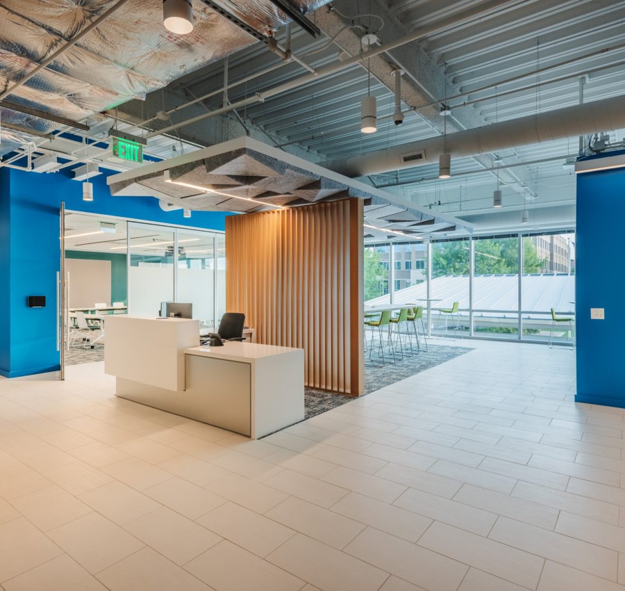 International engineering firm moves their regional office to Wade Park. The first generation space features custom millwork and a vibrant color palette.
