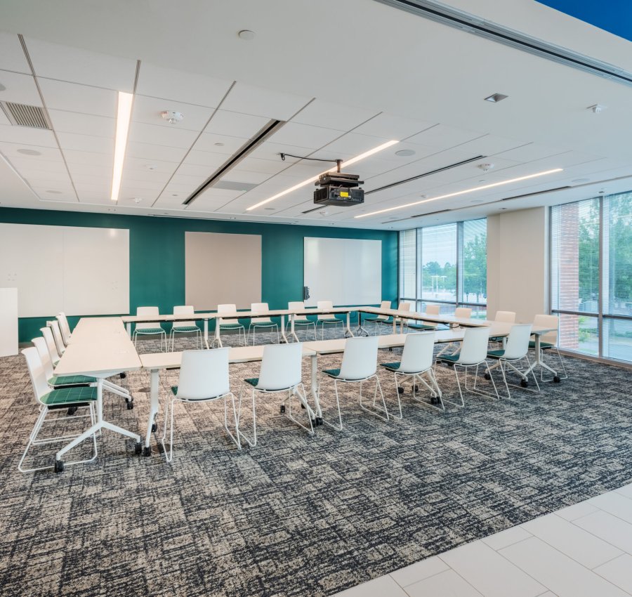 After completing Wade V Core and Shell for repeat client Dominion Realty Partners, Choate is selected to upfit the 2nd floor for this Fortune 500 customer. Tenants are greeted with floor to ceiling windows and a birds-eye view to the exterior garden and the master-planned Wade Park. The working environment features open collaborative spaces, coffee bars, focus rooms, mother’s rooms, break areas, and an internal reference library. The tenant’s technology hub is strategically located on the 1st floor, with all networking fed up to the 2nd floor main suite.