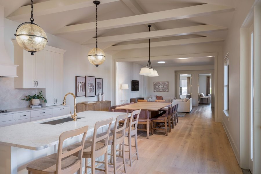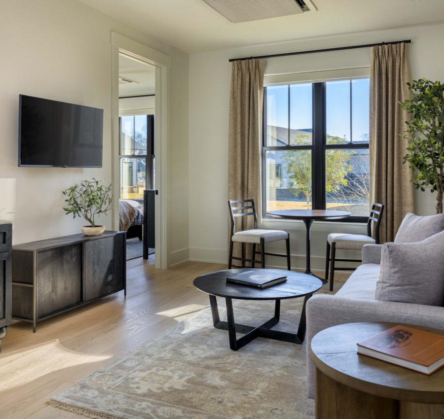 Close, proactive collaboration with ownership defined this project from the start. Open access to the jobsite allowed for real-time feedback and fine-tuned adjustments throughout the construction process, keeping decisions moving and protecting the quality of the job. Coordinating across more than 50 trade partners required seamless communication and mutual trust at every level, creating a foundation that proved essential to delivering a campus of this complexity and scale. The first home was phased months ahead of the others and used as the basis for numerous mockups to ensure every design element fulfilled ownerships’ vision, creating a harmonious blend of form and function. Plywood cutouts were made to the exact size of every piece of furniture to aid ownership in confirming a sense of scale and orientation, in addition to movement restrictions through all spaces.