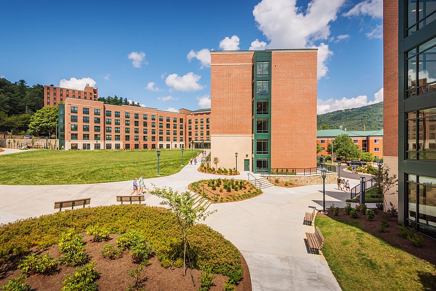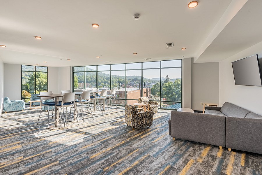 The new accommodations utilize suite and semi-suite style units, providing students with a variety of contemporary style living options. With ample space offering students 640 beds, the housing facility features a Type III wood-framed structure, and a cast stone and brick exterior. Green aluminum windows and metal roof elements are used to seamlessly tie the new building in with the existing campus architecture and design.
