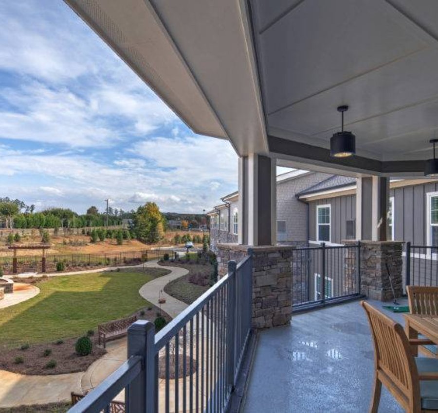 Community amenities include a theater, garden room, multi-purpose room, rehabilitation area, salons for both memory care and assisted living, library, private dining, full-service kitchen, and country kitchen café.