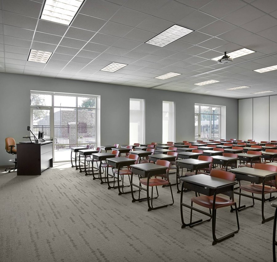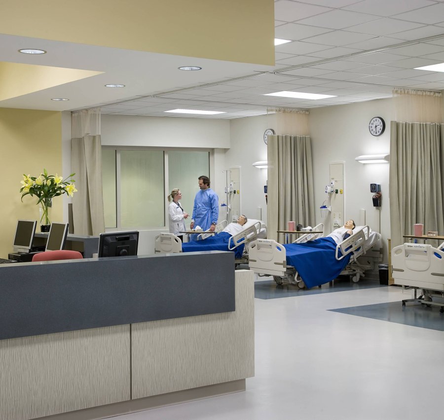 The project is a complete renovation of an existing structure originally built in the 1960s and serving as a Western Auto sales & distribution center. The program includes nine-station patient simulation lab; 10-bed Associate Degree nursing lab; five-bed Licensed practical nurse lab; and nine-station massage therapy lab. The Allied Health Program is further complimented by Medical Assistant office and practice labs; phlebotomy medical and blood draw labs; and a Surgical Technician suite with two mock operating rooms and sterile processing lab area. Medical gases, patient headwall, medical equipment, lighting and communications are integrated to provide a healthcare setting for training the students. The building includes a 100-seat tiered seminar room; a multi-purpose room; large divided classroom; seven regular classrooms; two instructional computer labs; a student resource computer lab; student library and lounge. Faculty, adjunct, student and building support spaces are also included.