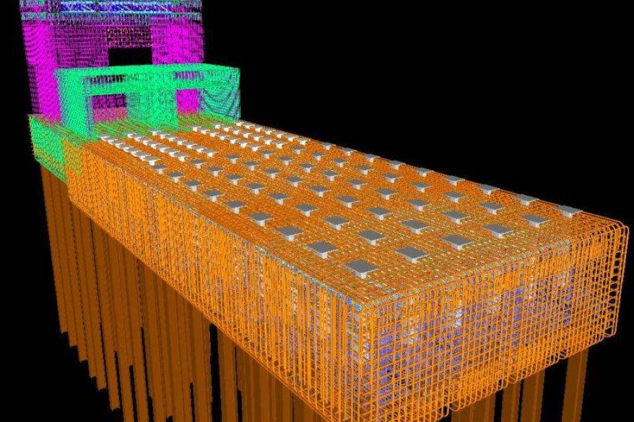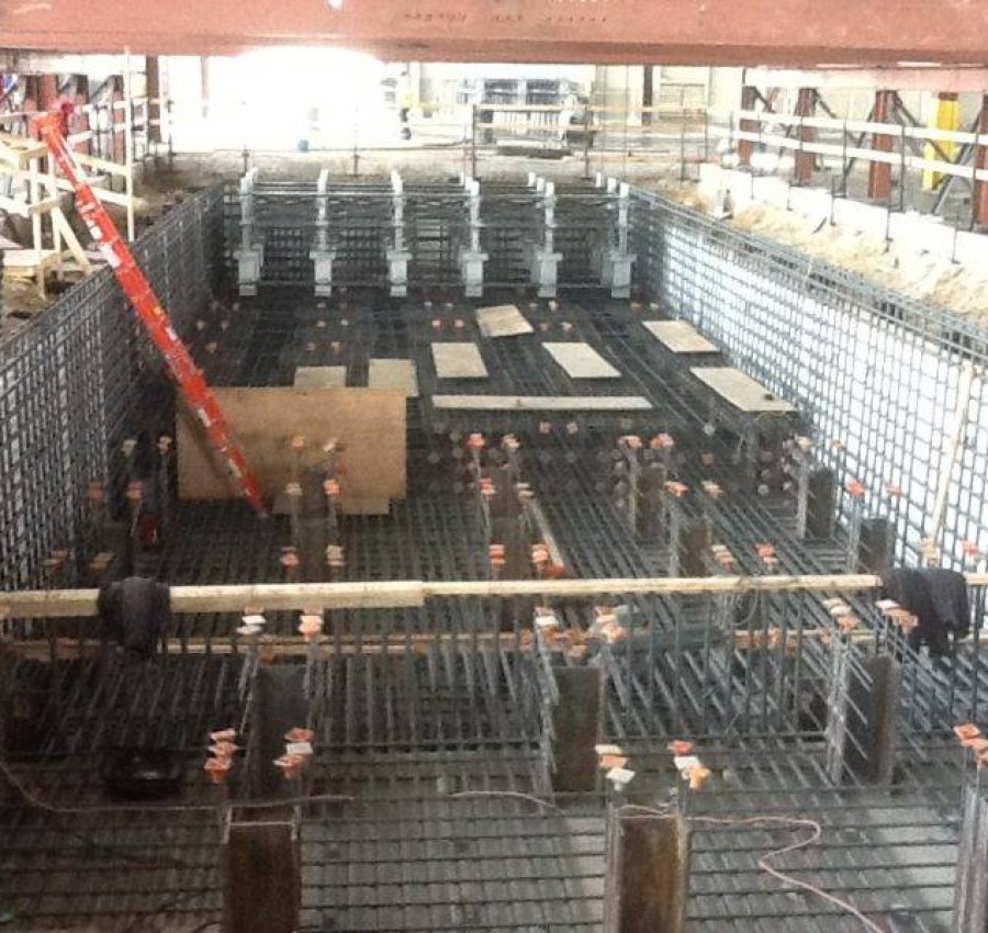 With over 900 tons of rebar bent to perfection at nearly the micron level, clash detection proved a critical challenge. Choate created the entire BIM model in-house to coordinate all of the rebar, anchors, piles and cross bracing of the foundation. On initial review, Choate identified over 8,500 conflicts in the test rig foundation.