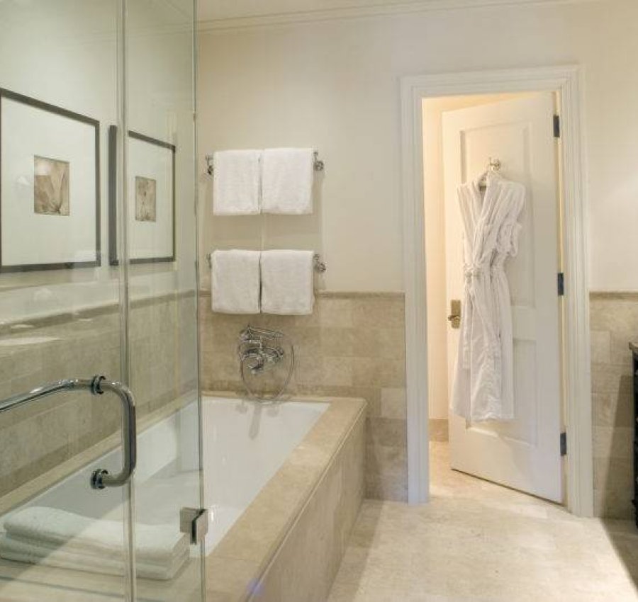Plush finishes include wide board hardwood flooring, tongue & groove wood ceilings, stone tile flooring and baths, and granite counter tops. The kitchen equipment includes high-end grade appliances; an outdoor gas grill and refrigerator sit on the screened porch. Each unit has its own swimming pool surrounded by tumbled clay pavers and a privacy wall. Units also have an impressive Great Room with a true wood burning fireplace, a master and junior master bedroom with a gas log fireplace and two additional bedrooms. The roof structure consists of heavy timber beams and wood trusses with two-piece mission clay Spanish-style tile installed as a heavy mud-set application. The exterior skin is stucco.