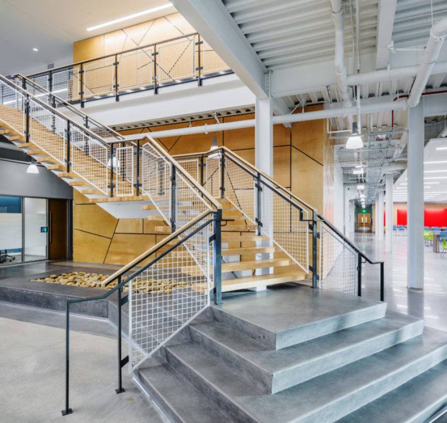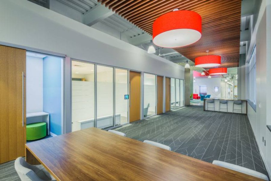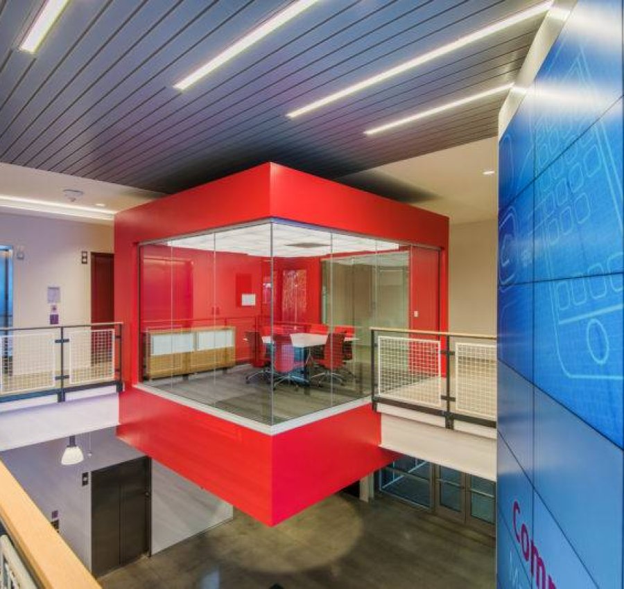 As a tech-savvy company, CompuCom believes in employing an Internet of Things (IoT) approach to their business enterprises. This foundation flows throughout the design of their project. The building’s full basement level incorporates devices and systems that manage the HVAC system. The basement level systems also monitor and control the overall levels of power usage and types of usage including low voltage lighting, generator and uninterruptible power supply (UPS), fire alarm, security and video surveillance system, elevator usage and tracking, as well as domestic and irrigation water consumption. Employee amenities include a fitness center, café-style dining area, and a multitude of indoor and outdoor collaboration work spaces.