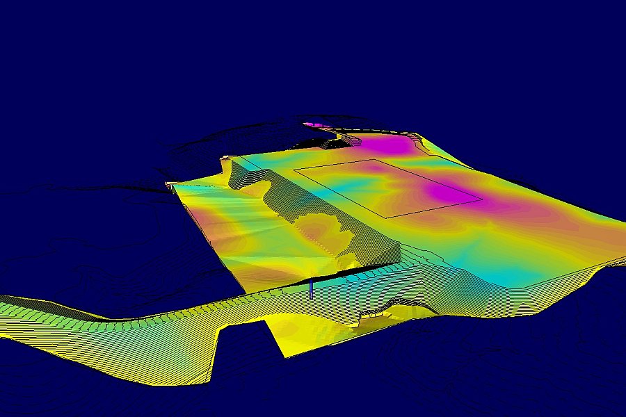 Rather than remove the graded earth from the site, the team chose an innovative approach and reused 35% of the blasted rock for soil stabilization, with the remainder repurposed across the site. This undertaking required 30 graders to work simultaneously for nearly 40 weeks, saving the project more than $2 million. Through a detailed site analysis, the Choate team guided trade partners in the cut-and-fill process (up to 60 feet for both) to adjust the final contours and create a balanced site for long-term stability.
