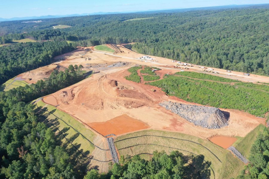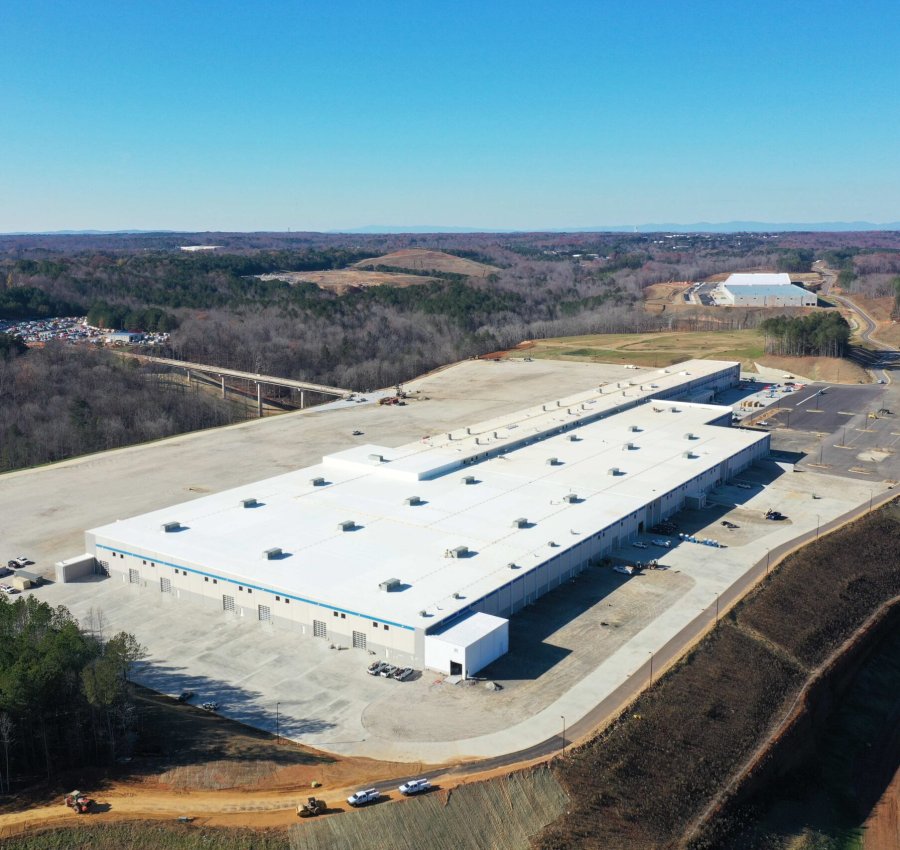 The first step in this monumental project was readying the ground for the development. Due to the client’s delivery goals, wetland permitting, and the location of the project atop a mountain, the team developed a phased approach to the extensive earthmoving and grading required to reshape the mountain terrain and ensure a schedule with no delays. Starting in 2022 – one of the wettest winters in Gainesville’s history – the team cut the mountain in half and began the massive grading needed for Cottrell’s new manufacturing facility. In the end, more than 1,800,000 CY of dirt and rock was moved, but not removed.
