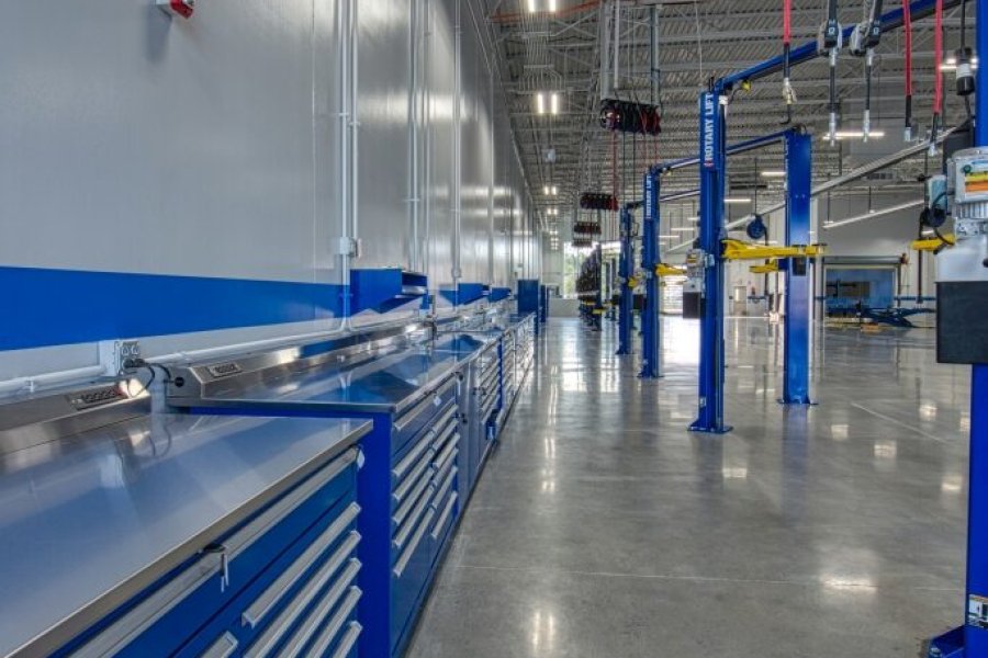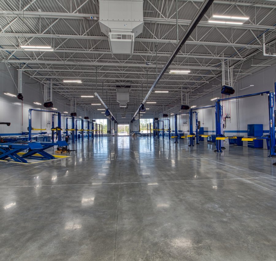 Constructing an automotive project of this scale requires extensive pre-planning to ensure materials arrive on time. Working closely with the client and trade partners, the Choate team was able to accurately forecast the lead times on essential materials, including the garage doors needed for the several service and wash bays, and order the supplies needed early in the process.