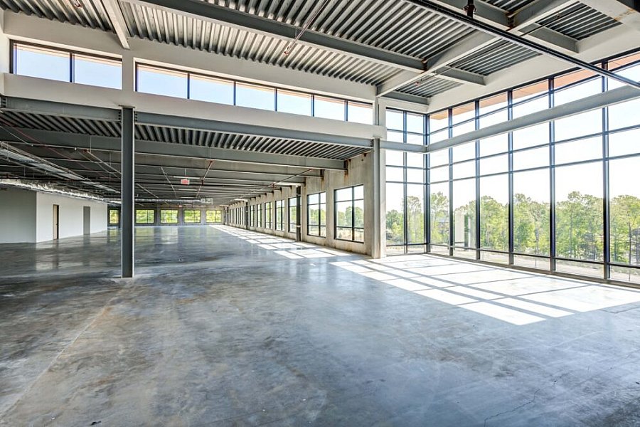 The perimeter walls are constructed of precast concrete with a structural steel framing system. The exterior finish is a combination of painted precast, EIFS, phenolic panels with storefront and curtainwall. Designed to spark connection and creativity, the building’s open floor plans with virtually column-free layouts provide flexible interior design complete with natural light and tree-lined views.