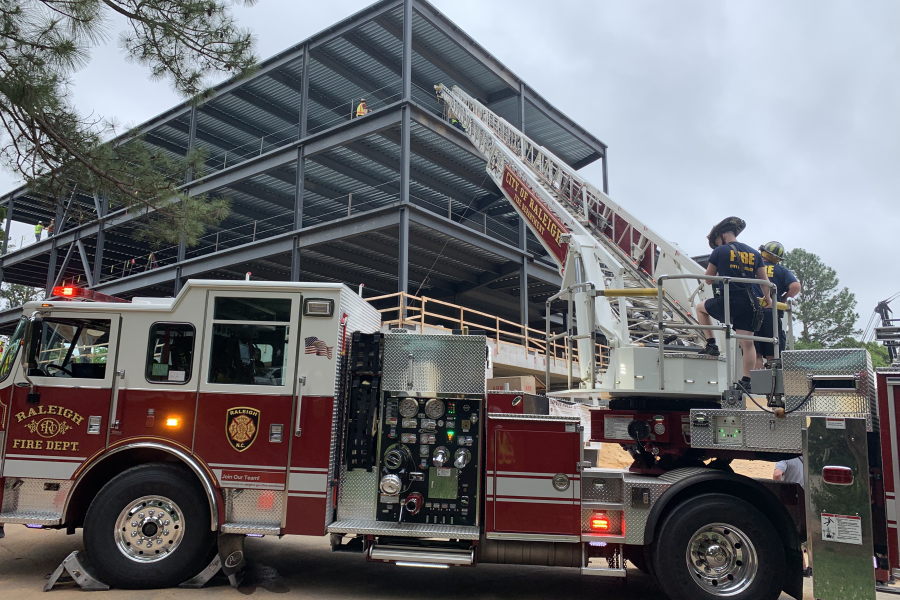 The project team partnered with the Raleigh Fire and Rescue team throughout the project to ensure everyone onsite was well versed in the techniques needed to maintain a safe environment. With several structures onsite slated for removal, the Fire and Rescue team conducted fire training sessions on the campus before demolition occurred.