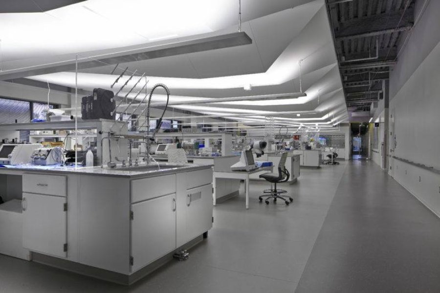 Each lab island is equipped with epoxy resin tops, medical gases, and completely deionized water systems. Mock-up rooms allow customers to see all of the company’s products in motion, offering true-to-life and fully operational surgery rooms with surgical lighting and medical equipment.