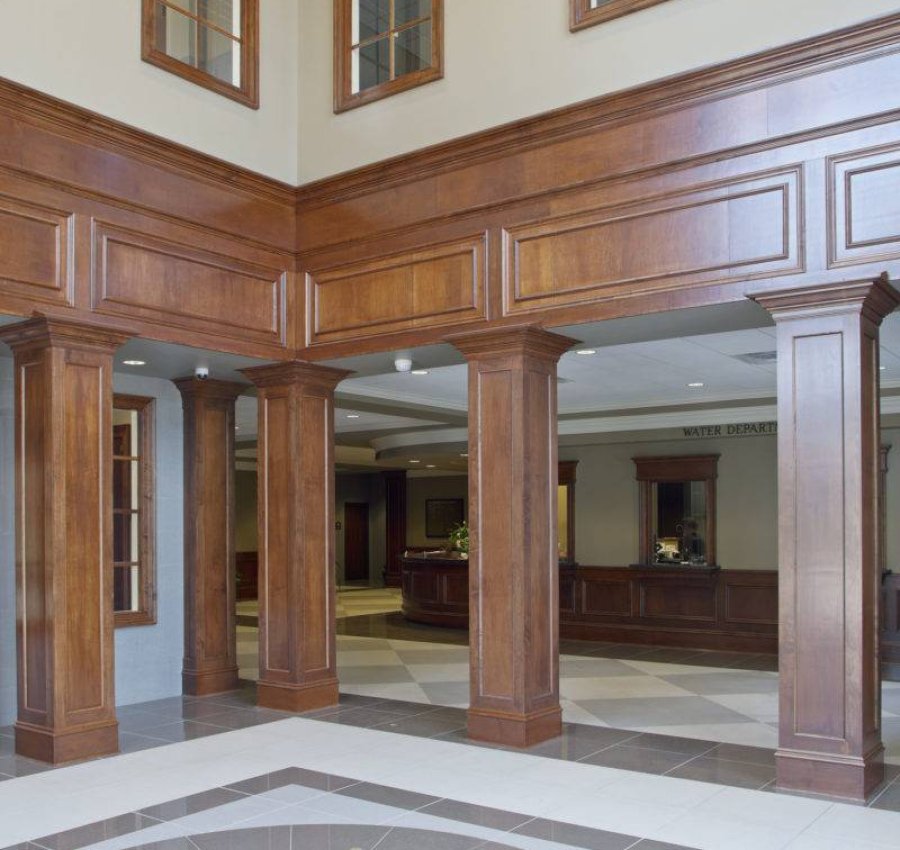 As a tribute to the history of Hinesville and Liberty County, the third floor features the Hinesville Room. The stained-wood lounge showcases the city's history and the achievements of its citizens, such as Samuel Dowse Bradwell who founded the Bradwell Institute and Daniel Stewart, for which Camp Fort Stewart is named. The project also required the renovation of the town police station, upfitted by Choate to serve as the interim City Hall during construction. The entire project was completed five months ahead of schedule and under budget.