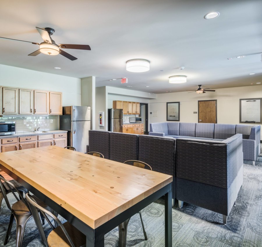 Capable of housing 72 students, the residence hall is comprised of 34 wood-framed units, each including a heavy timber entrance canopy and structural steel throughout. Students can enjoy common area lounges and kitchens, indoor and outdoor patios, and an outdoor grill and fireplace.