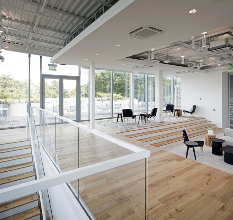 Interface, Inc. combines their Interface Corporate Office, Interface Americas, and Atlanta showroom, into one, three-story adaptive reuse project in the heart of Midtown Atlanta, GA. Interface operations that were previously located in separate locations in Georgia, now exist under one roof. This one-of-a-kind, contemporary workplace, formerly a 1950s decrepit office building, is an urban oasis for employee well-being.