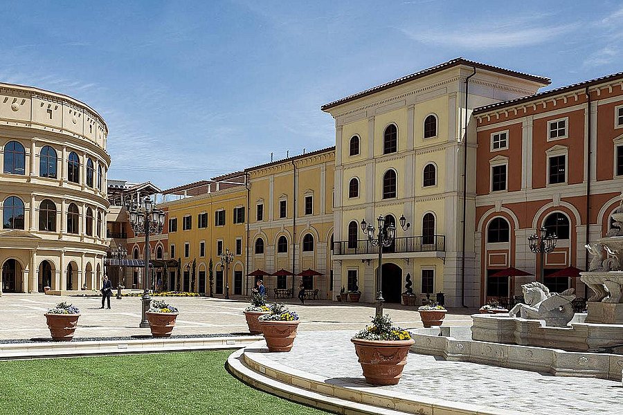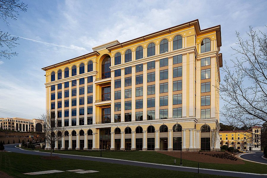 Complimenting the office and amenity buildings, the 1,385-space parking deck is designed to resemble the buildings that line the Piazza del Campo in Siena. The stunning deck features a combination of lightweight cast stone, decorative metal grilles, faux windows, glass fiber reinforced columns and concrete tile roofing.