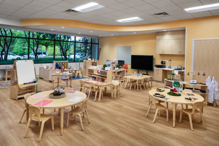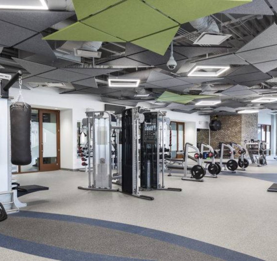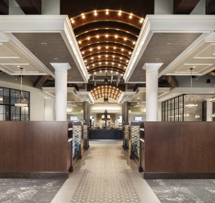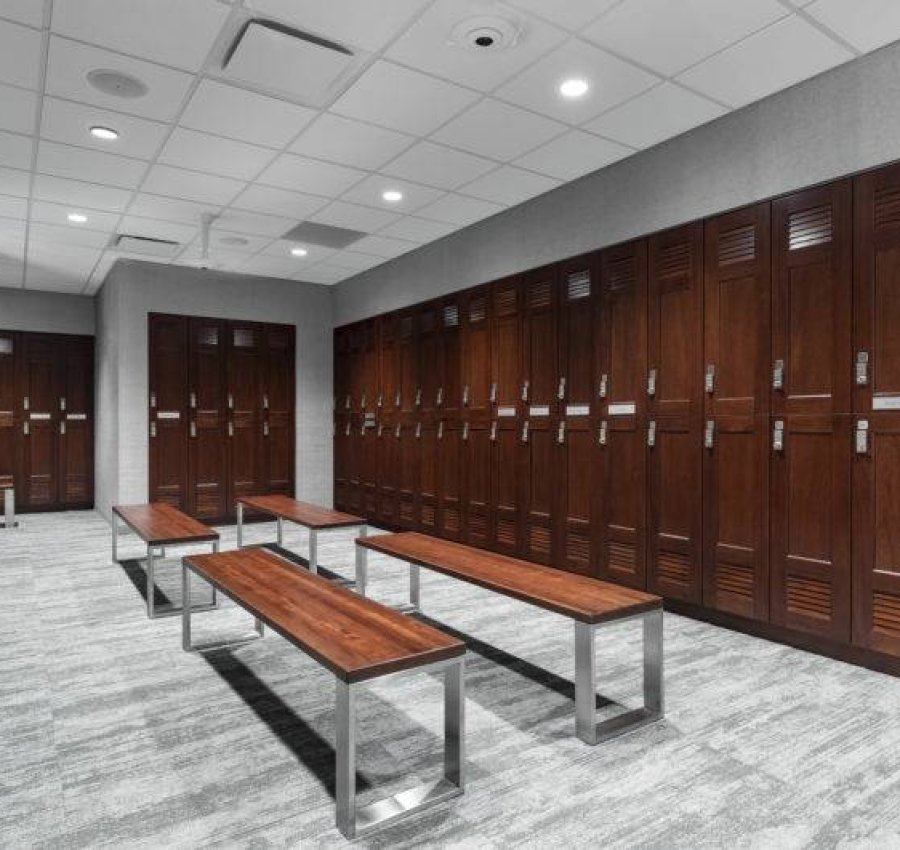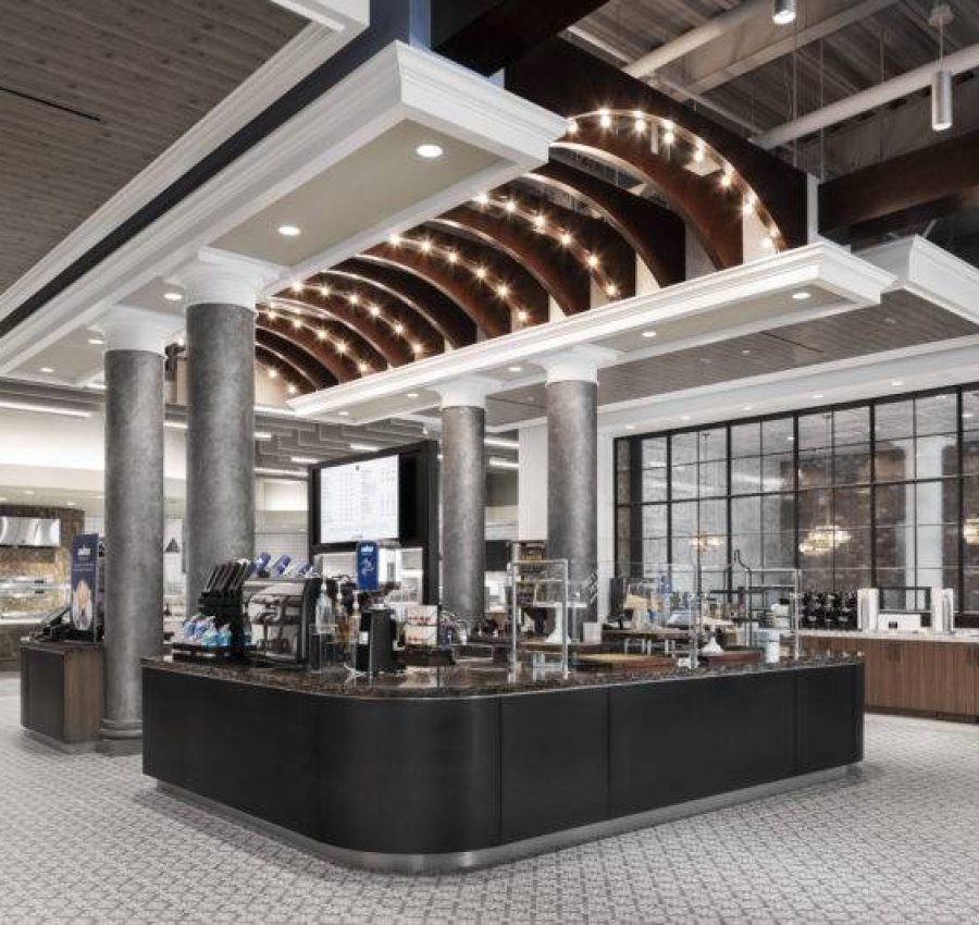 The three-story amenities building, inspired by the Roman Colosseum, houses employee dining and fitness centers, as well as a full natatorium complete with a 1,700-SF indoor pool, sauna and steam rooms, and full locker rooms.