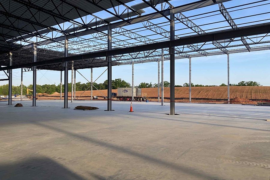 A proprietary piece of stamping equipment, specially made in Europe, was the impetus for the expansion. The machine’s shipping, arrival, and installation were crucial to the project’s successful completion. Its installation required several equipment pits to be dug, some as deep as 10 feet. Design modifications, made while the machine was crossing the Atlantic, required additional pit construction. It arrived in Lavonia in seven shipping containers, one weighing 38,000 pounds.