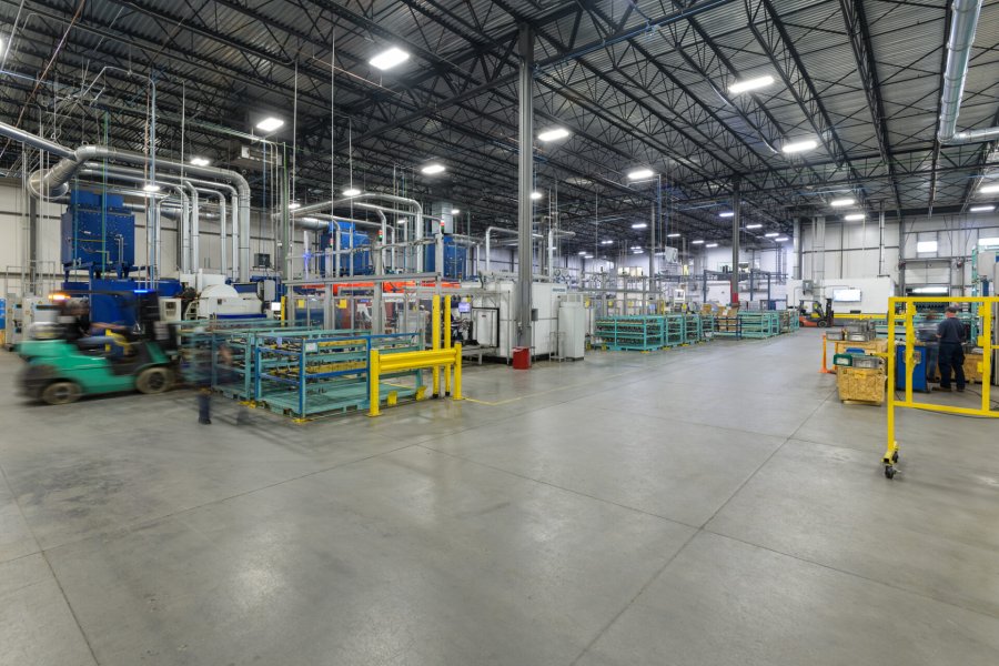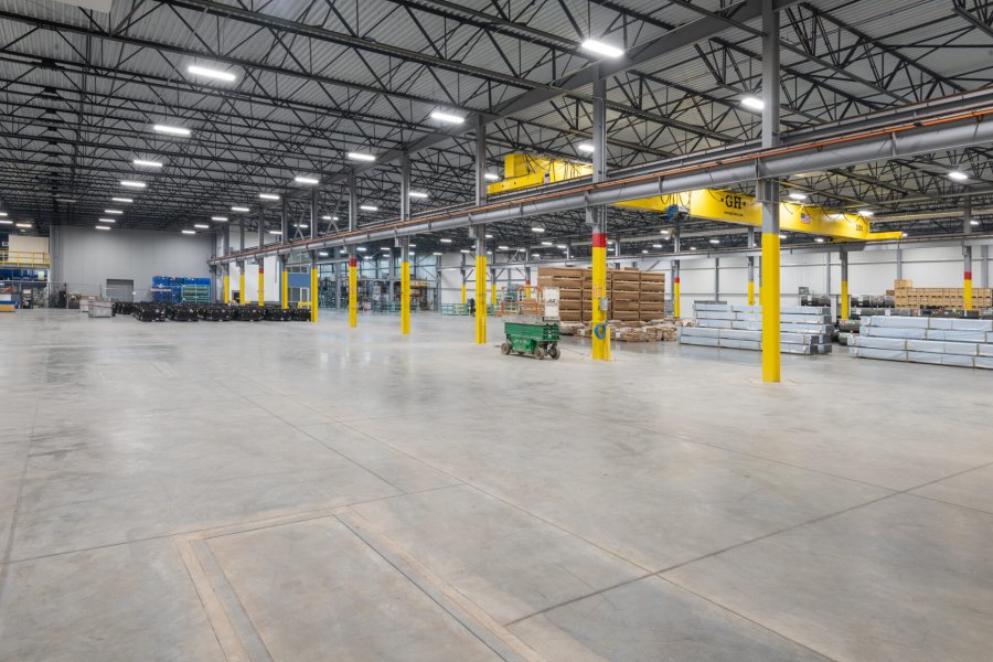 A proprietary piece of stamping equipment, specially made in Europe, was the impetus for the expansion. The machine’s shipping, arrival, and installation were crucial to the project’s successful completion. Its installation required several equipment pits to be dug, some as deep as 10 feet. Design modifications, made while the machine was crossing the Atlantic, required additional pit construction. It arrived in Lavonia in seven shipping containers, one weighing 38,000 pounds.