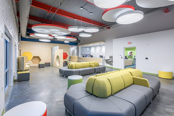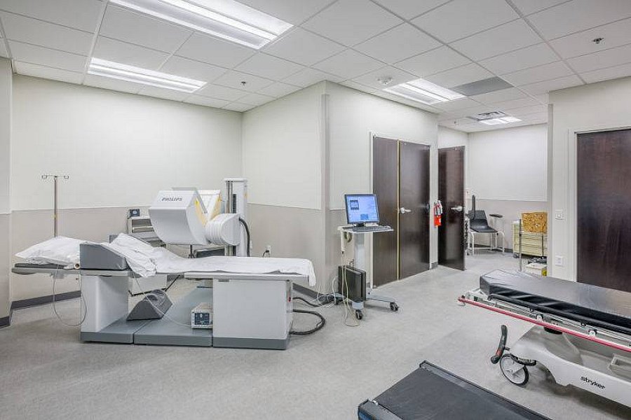 A combination of steel and concrete, the building is complemented by traditional brick and EIFS. An abundance of windows with high-performance glazing and façade projections create an attractive exterior which allows in an abundance of natural daylight.Featuring the latest in equipment and technology, well-appointed exam rooms, endoscopy procedure rooms, recovery bays, laboratory rooms, X-ray areas, and additional support areas form the interior of the space. Finishes create a functional yet modern space with decorative wall panels, high-end millwork, solid surface counters, and LED lighting.