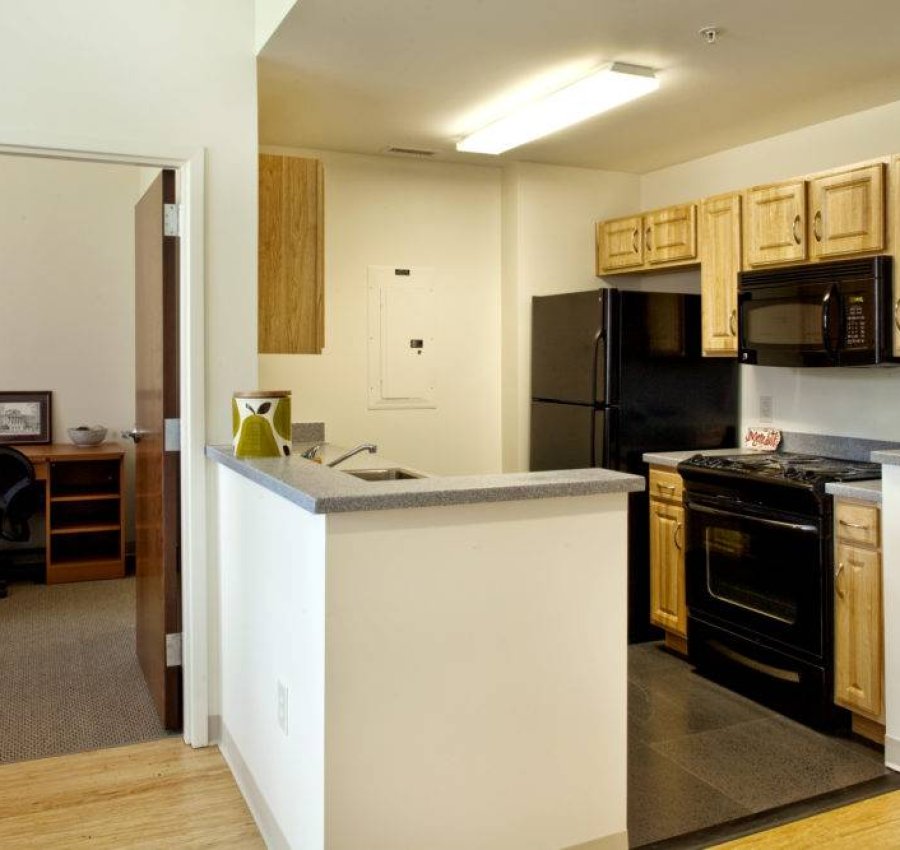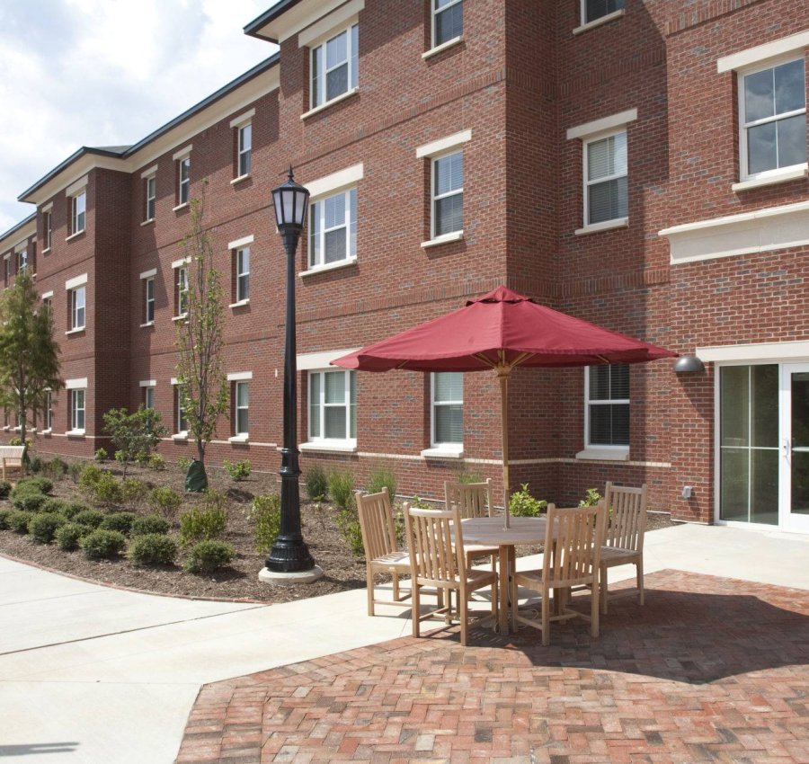 Designed to blend seamlessly with the traditionally-styled campus architecture, these brick and cast stone clad apartments maintain an elegant façade while containing only the most modern advances in green building, having achieved LEED Silver certification.
