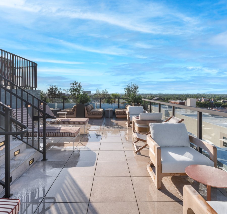 Notably, the stainless-steel rooftop pool was prefinished and pre-tiled, requiring extensive front-end planning by the project team. BIM modeling, structural steel coordination, and coordination with the city and neighboring businesses allowed for a seamless installation.