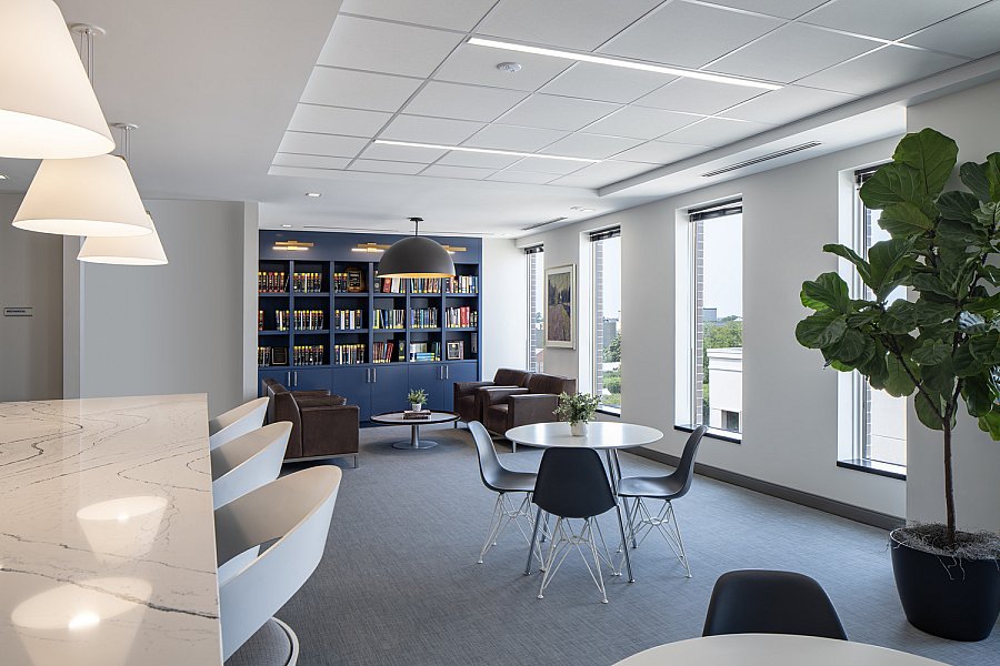 Conducting corporate construction within an occupied space in a bustling downtown area presented the usual challenges throughout the renovation. With various entities, including law firms, banks, and the U.S. government operating within the building during regular hours, the project team strategically managed noise restrictions by implementing off-work hours and employing alternative construction techniques to ensure minimal disruptions for all tenants.
