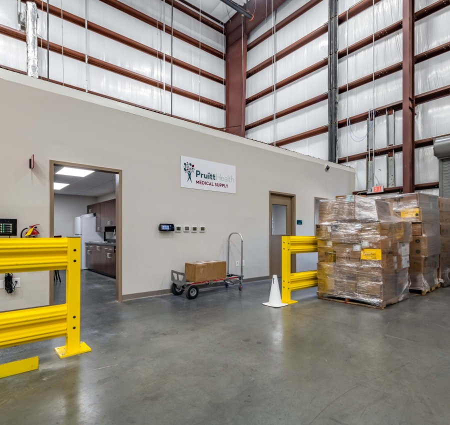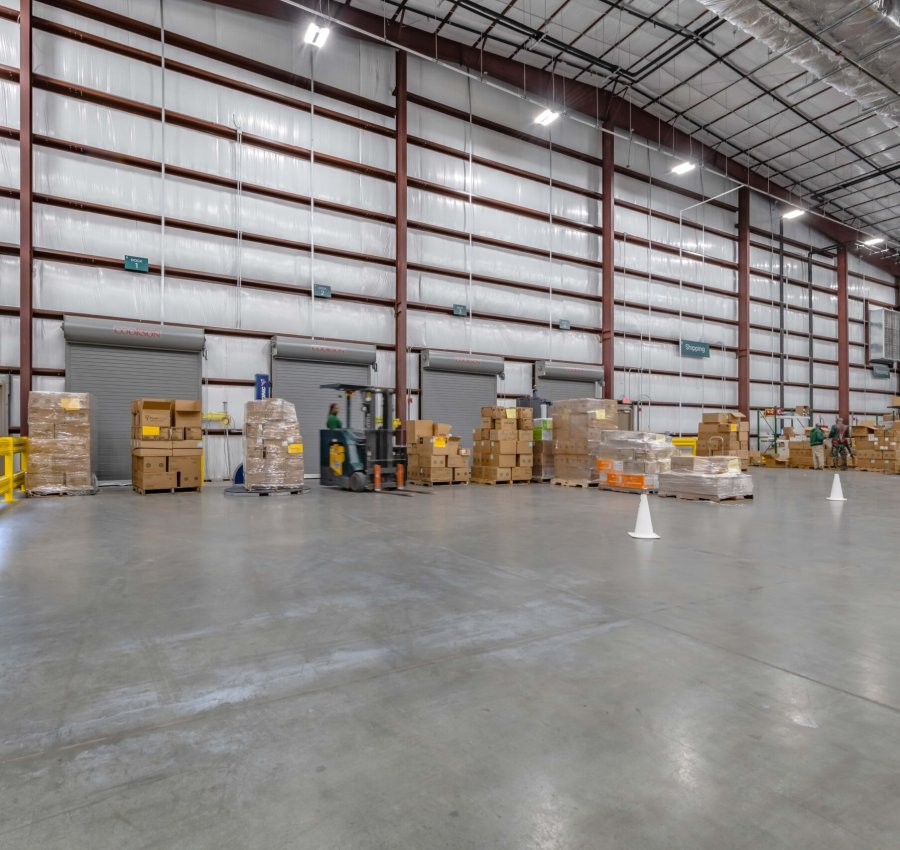 In addition to increased safety and efficiency, the medical storage facility also requires optimal environmental conditions to safely store critical medications and supplies. To do so, the project team used DuctSox, an industrial fabric air dispersion product, throughout the building to evenly deliver controlled, conditioned air as an alternative to traditional metal ducts. In large spaces, metal ducts are not only visually less appealing, but they allow drafts to occur near the diffusers, resulting in inconsistent temperatures and higher energy costs.