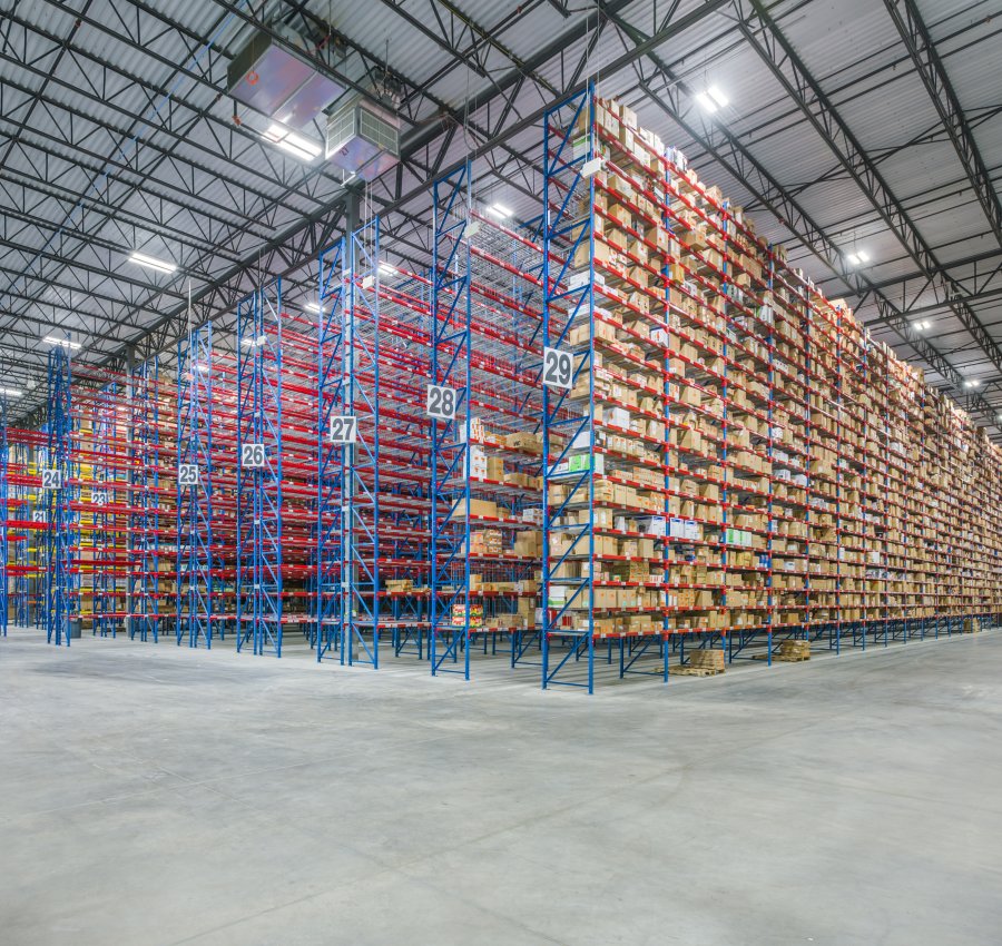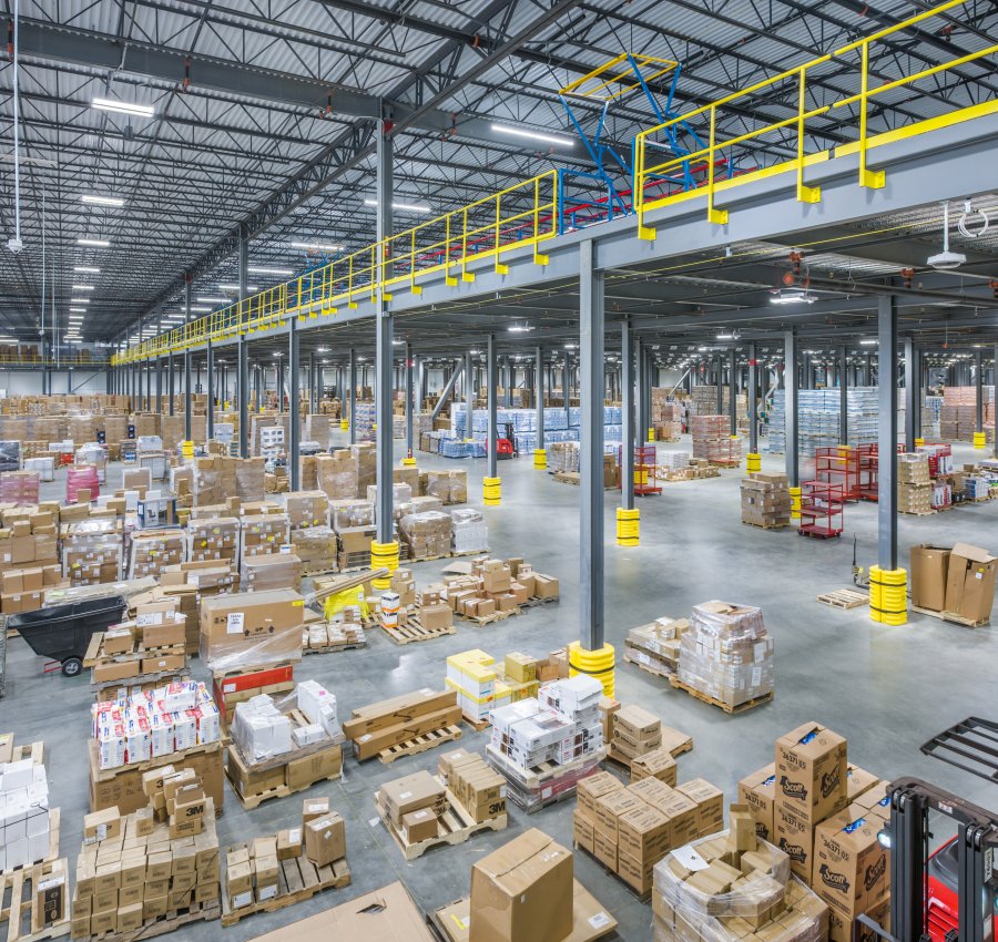 Featuring a 322,000-SF structural steel, fully-racked mezzanine, automated guided vehicles (AGVs) can quickly retrieve and process orders in the warehouse. The mezzanine structure is designed to limit vibration, deflection, and slab cracking, allowing AGVs to operate in an ideal environment.