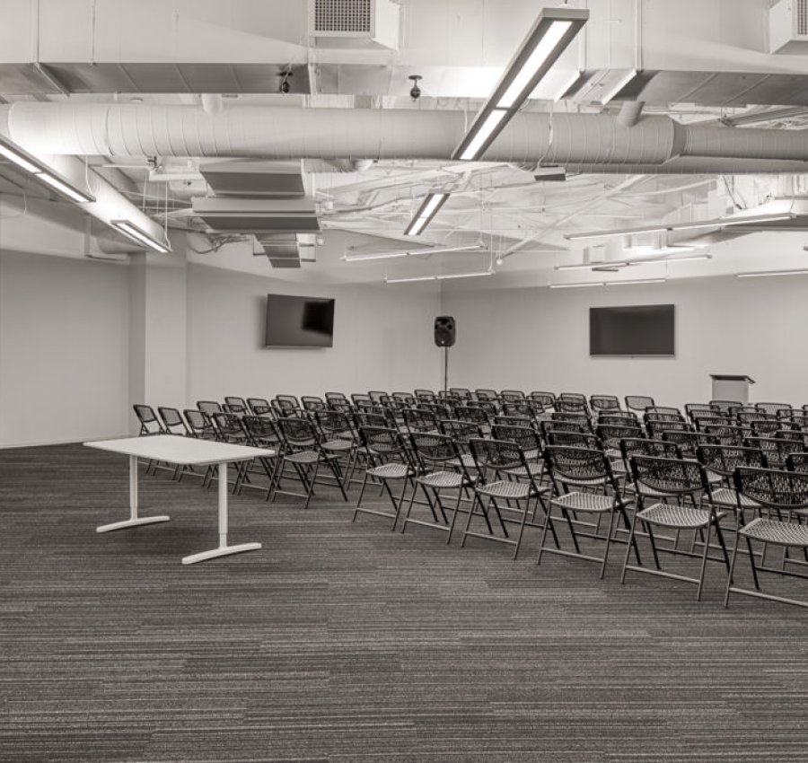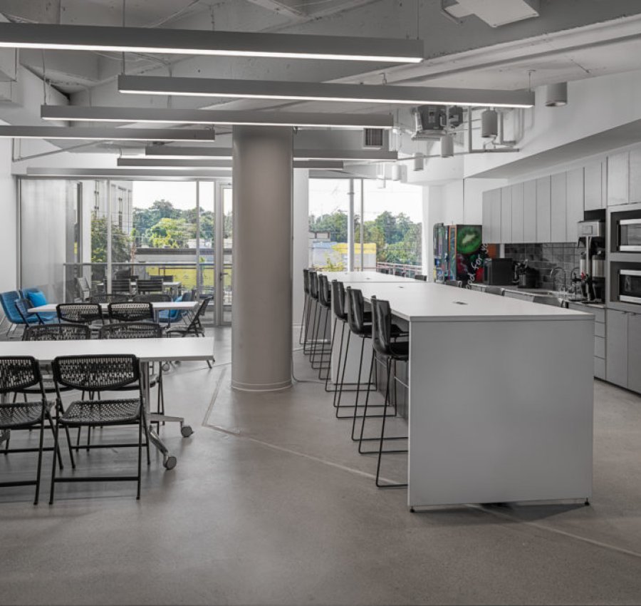 The 100,000-SF interior renovation includes demolition of interior finishes, walls, and millwork. Fostering a collaborative and creative space, each floor is enhanced with community areas, quiet rooms, conference rooms, a break room for employees to relax, and a large boardroom.