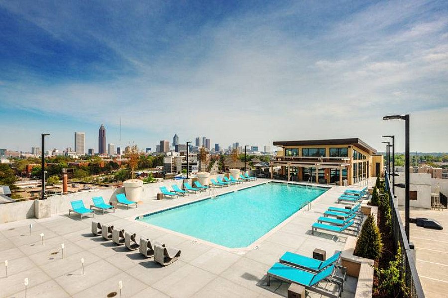 Additional amenities include a mail room, bocce ball court, leasing office, and expansive fitness room.
