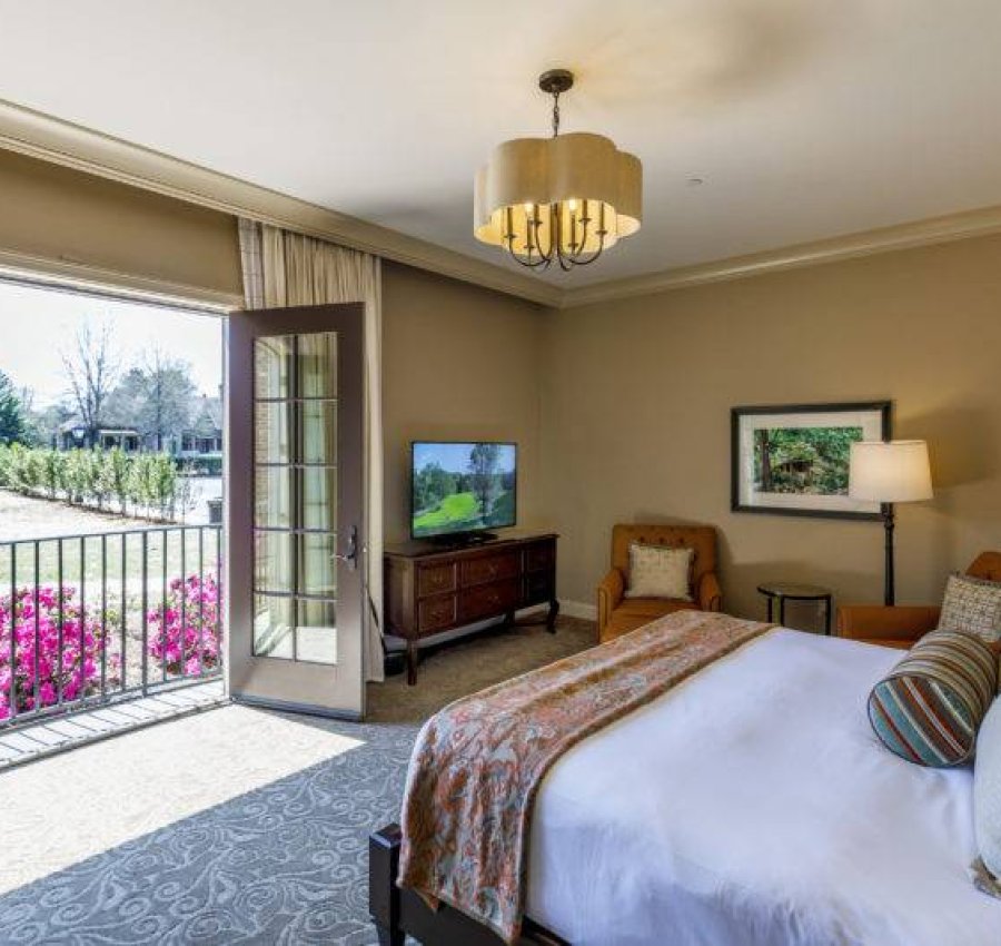 Within the conference center, the 5,000-SF Savannah Ballroom features vaulted ceilings with exposed and stained scissor trusses, painted millwork, dormer windows, and a monumental floor-to-ceiling fireplace.