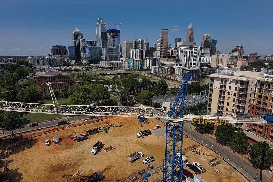 To reduce the potential for shrinkage and provide further strength in the foundations, the structure is built using post-tensioned concrete. Erecting a high-rise structure in a populated urban setting presents a range of considerations the project team tackles with fervor. With a 14-story commercial building sitting adjacent to this already-tight site, the team proactively coordinated the project schedule to address every detail, from delivery of materials to the movement of said materials throughout the site. Advanced planning and early communication with the client played critical roles in the early success of this senior living project.