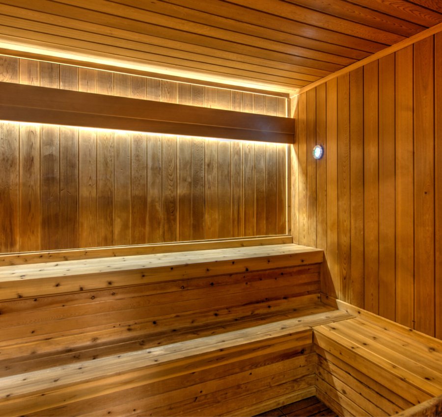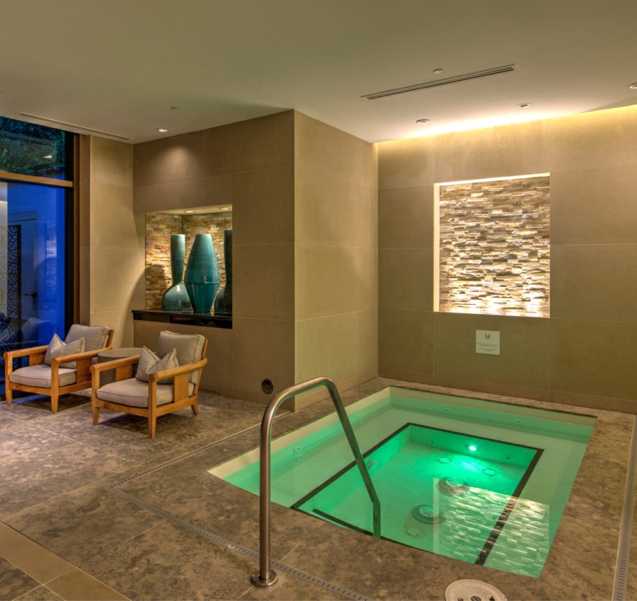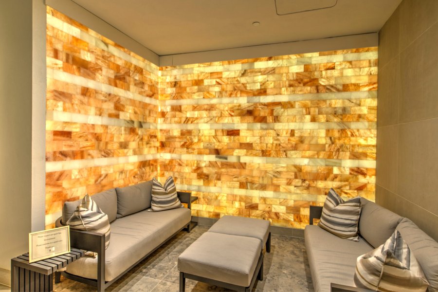 Tranquility awaits in the luxurious men and women’s lounges, each renovated to include a soothing color palette and various treatment rooms for the ultimate relaxation experience. In the women’s lounge, an entrancing Himalayan salt wall is backlit, inviting guests to unwind in the intimate lounge area. The Cool Down Lounge includes a shower, steam room, whirlpool, sauna, and a deluge shower.