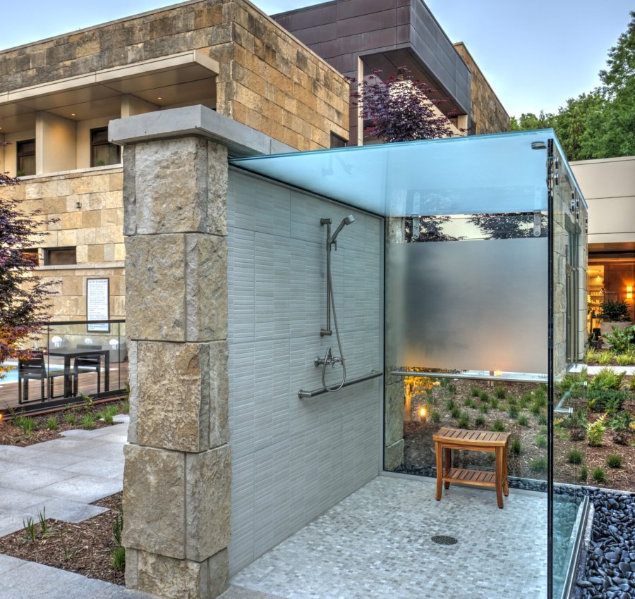 In the Wet Treatment rooms, the team constructed free-standing aroma cloud cryotherapy tubs, a wet pedestal table, and stainless steel cabinets to house the oils and therapies for guests. Tiled heated loungers are located in each locker room, with an ergonomic shape to provide a full-body soothing heat. Rounding out the guest experience is the Meditation Garden, constructed on the second floor of the spa.