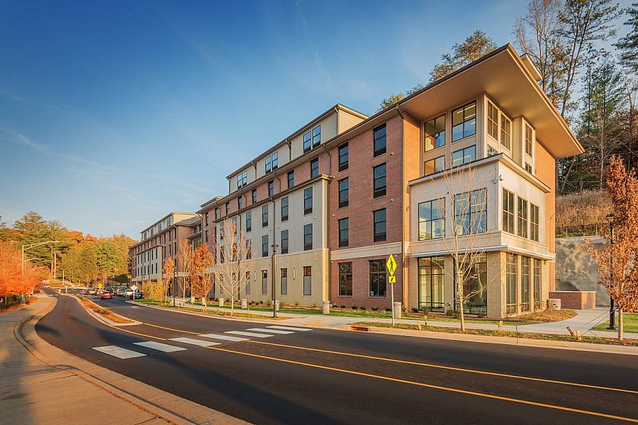 The 120,571-SF building offers suite- and semi-suite style layouts with private and shared baths. Students feel right at home with impressive amenities including study rooms, lounges, laundry rooms, a large multi-purpose area, and kitchens for common use. Students and staff can enjoy a mix of businesses located in Nobel Hall including an outdoor recreation retailer, mini-mart, sandwich shop, and Chili’s Bar and Grill completed by Atlanta’s Choate Interior Construction team.