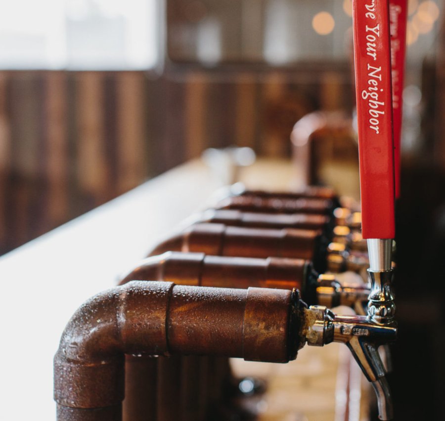 A tasting room, featuring all of Wild Heaven’s craft beers, is the centerpiece of the space.