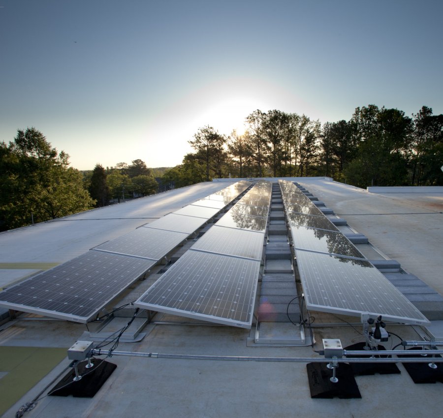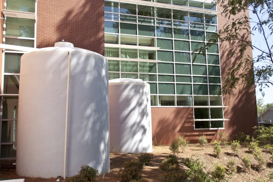 Forty-seven geothermal wells are installed to an average depth of 350 feet, porous paving is used to promote in-ground storm water detention, and cisterns provide irrigation water. Additional unique components to this building include sunshades, light shelves, numerous green roofs, and solar panels.