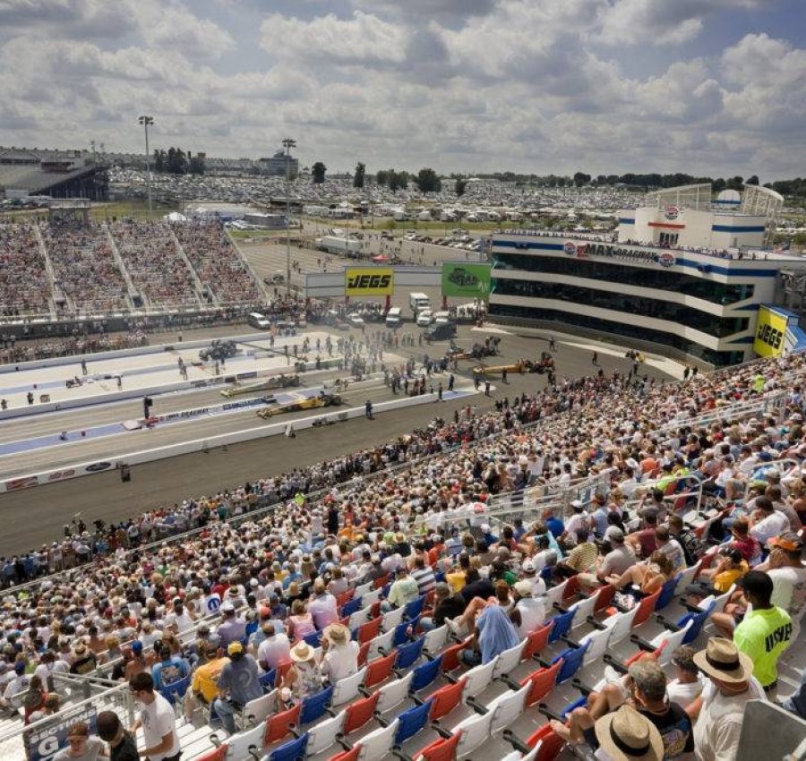 A total of 1,876 workers were involved in the construction of zMAX Dragway, representing 57 companies that included contractors, subcontractors and suppliers. Together they worked 636,000 combined man hours, averaging 300 workers on site daily with each man or woman averaging an 11.78-hour workday.